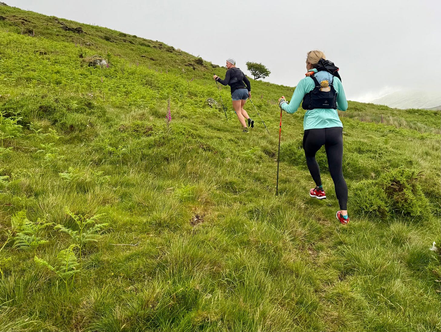 I recced half of the route back in April. At the time it was glorious sunshine and we ran two sections of the route over two days with a sleep in between. Even with the benefit of sunshine and sleep the route was absolutely brutal. Some of the climbs were so steep I was using my hands to pull myself up, and a couple of the rocky descents were a little hairy!